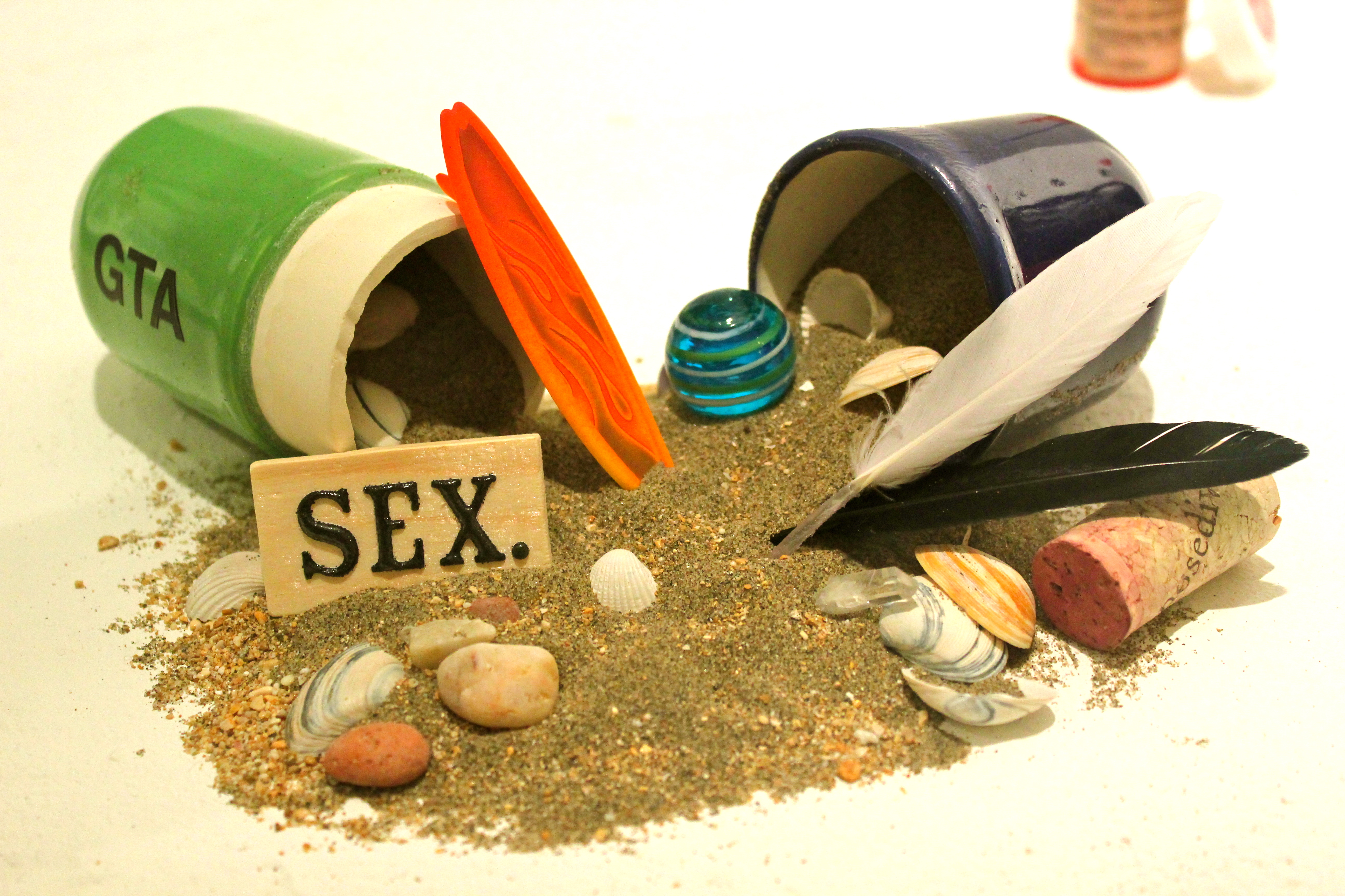shells from a beach in Holland (North Sea) and sand from Goleta (GTA) Beach in